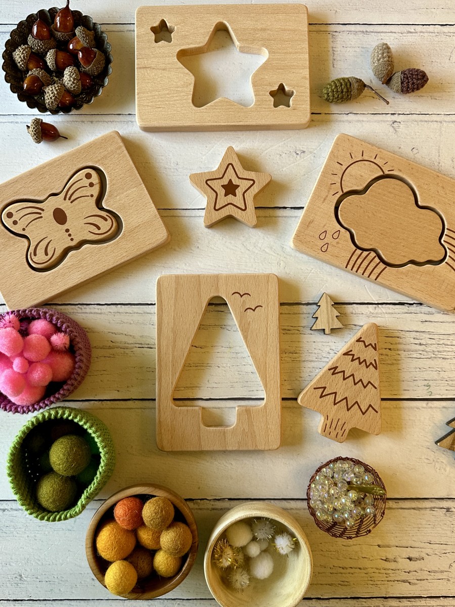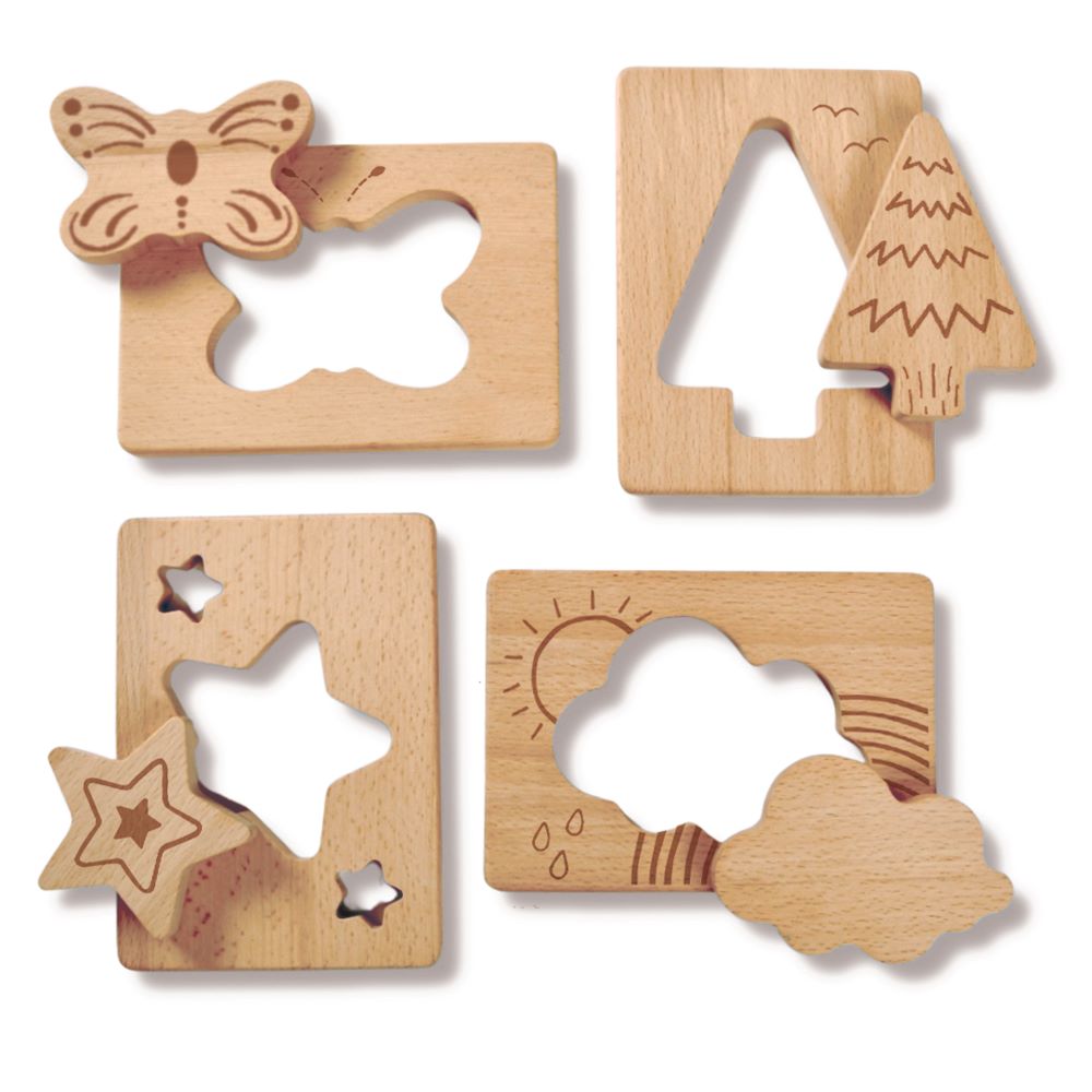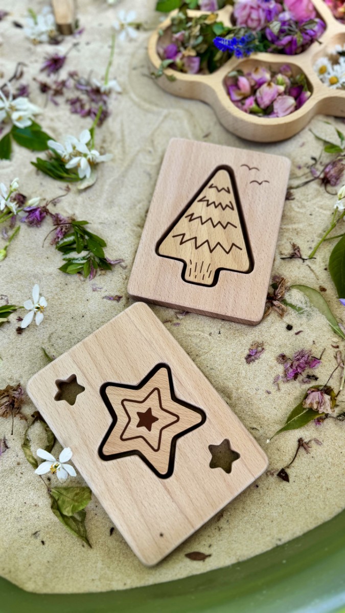 • Set of four two-piece shapes (Tree, Star, Cloud and Butterfly)