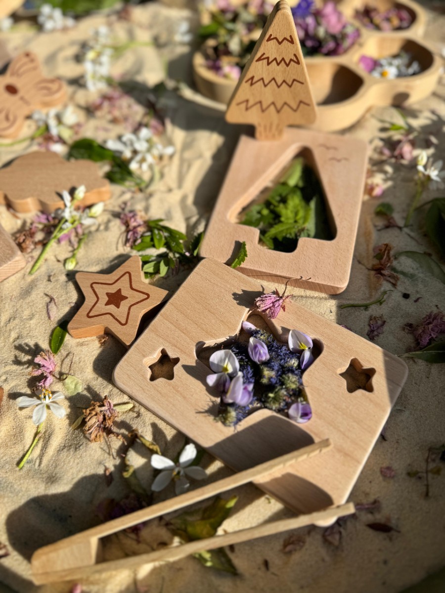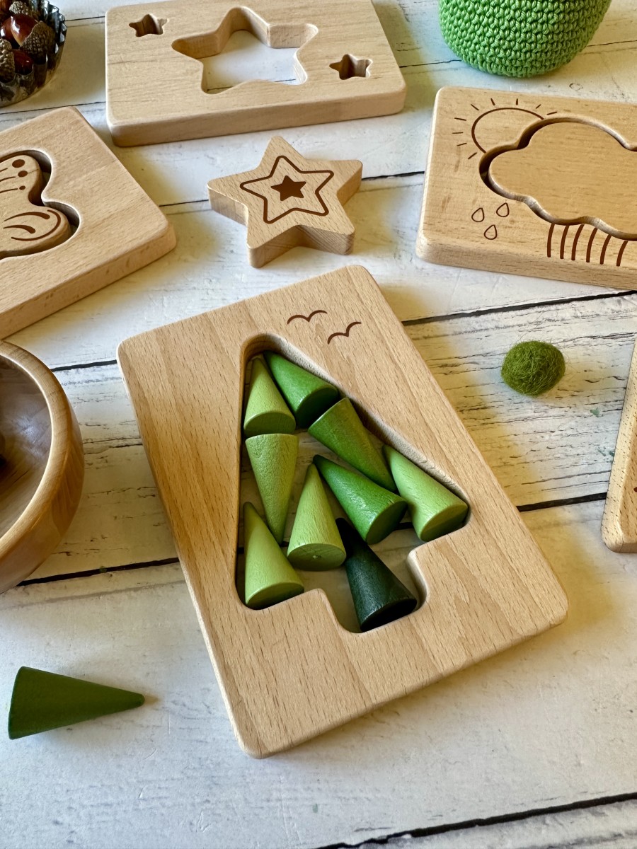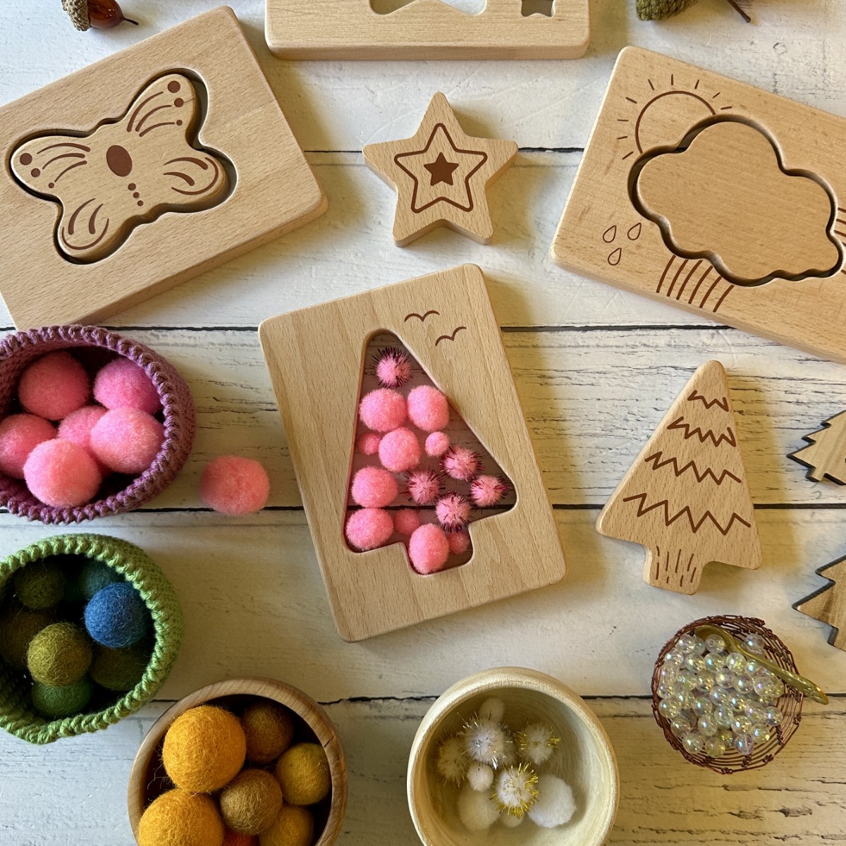 • Set of four two-piece shapes (Tree, Star, Cloud and Butterfly)