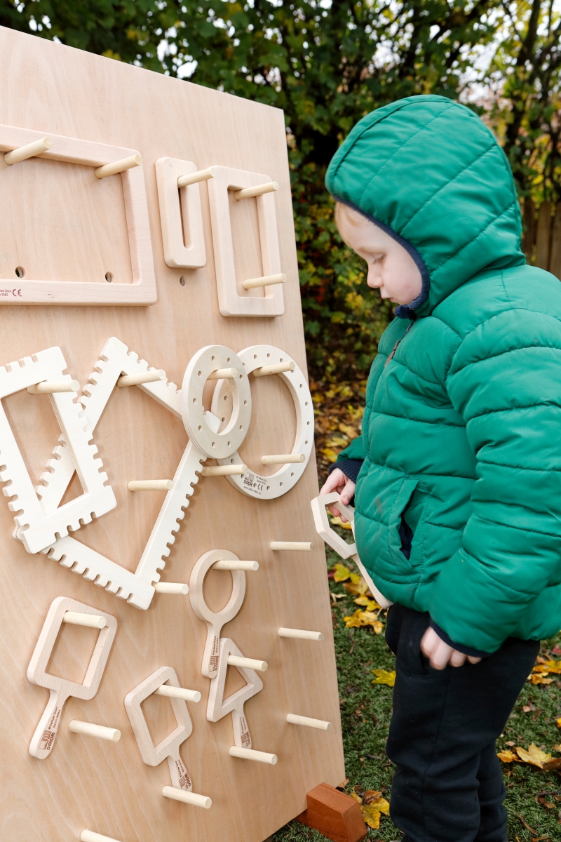 Made from FSC-certified birch plywood, the three lightweight wooden frames in this set are easy to manipulate as children explore threading the holes with a variety of lacing materials. Use wool, laces, string or ribbons to create colourful compositions. Such enjoyable activities are excellent for helping children to develop hand-eye coordination, dexterity and concentration skills. External frame diameters: 210mm, 140mm and 70mm. Age 18mths+.