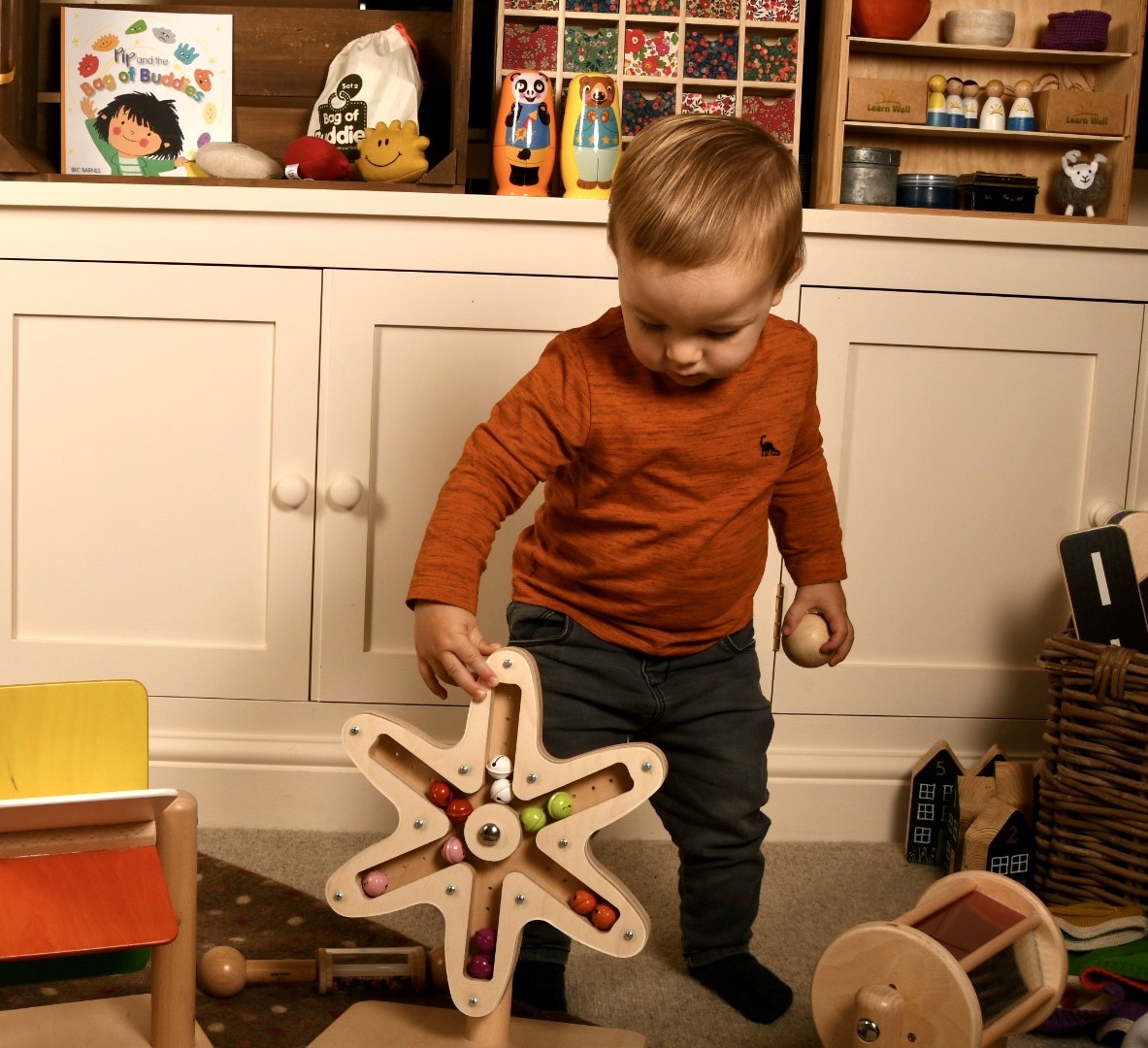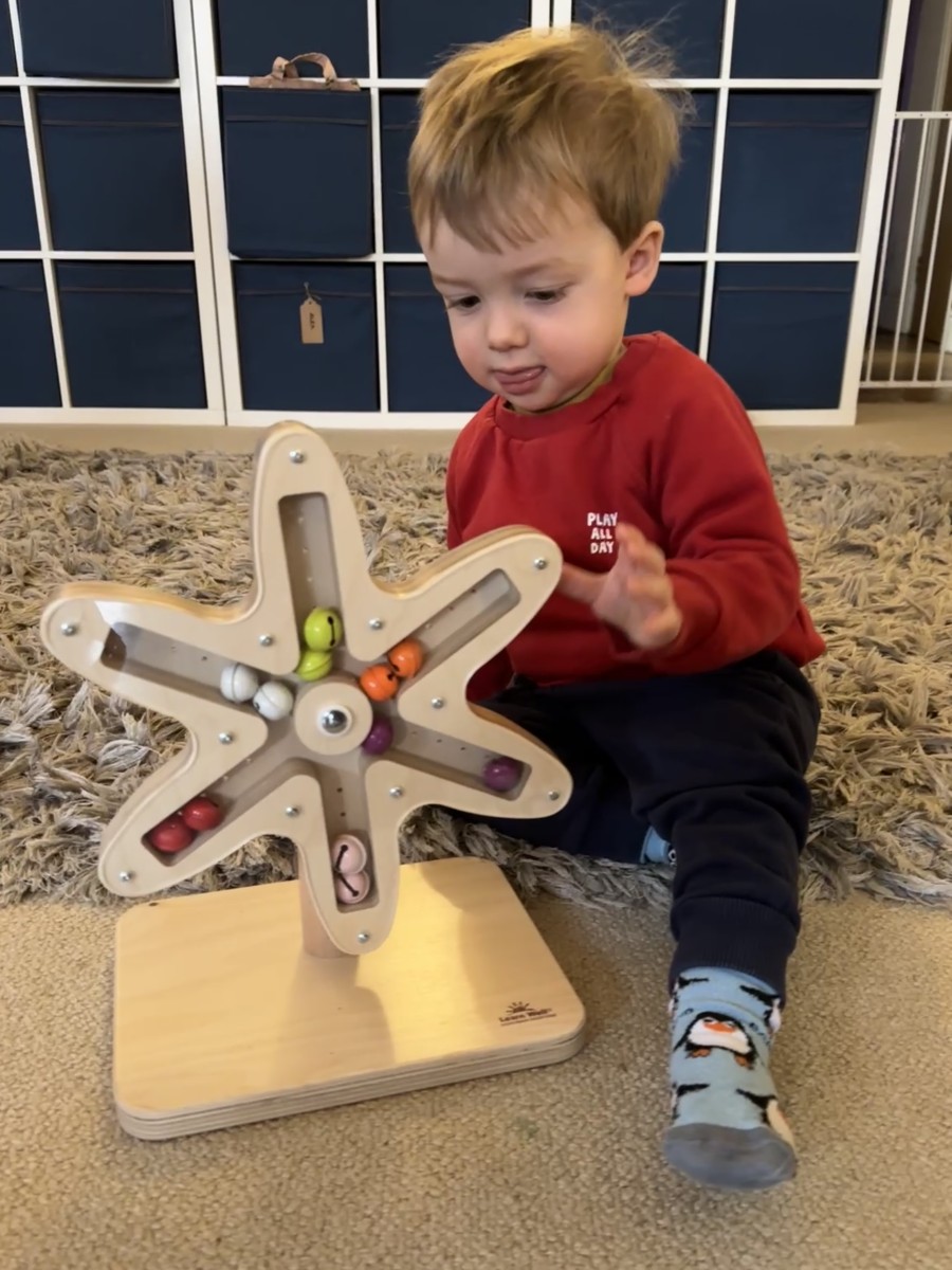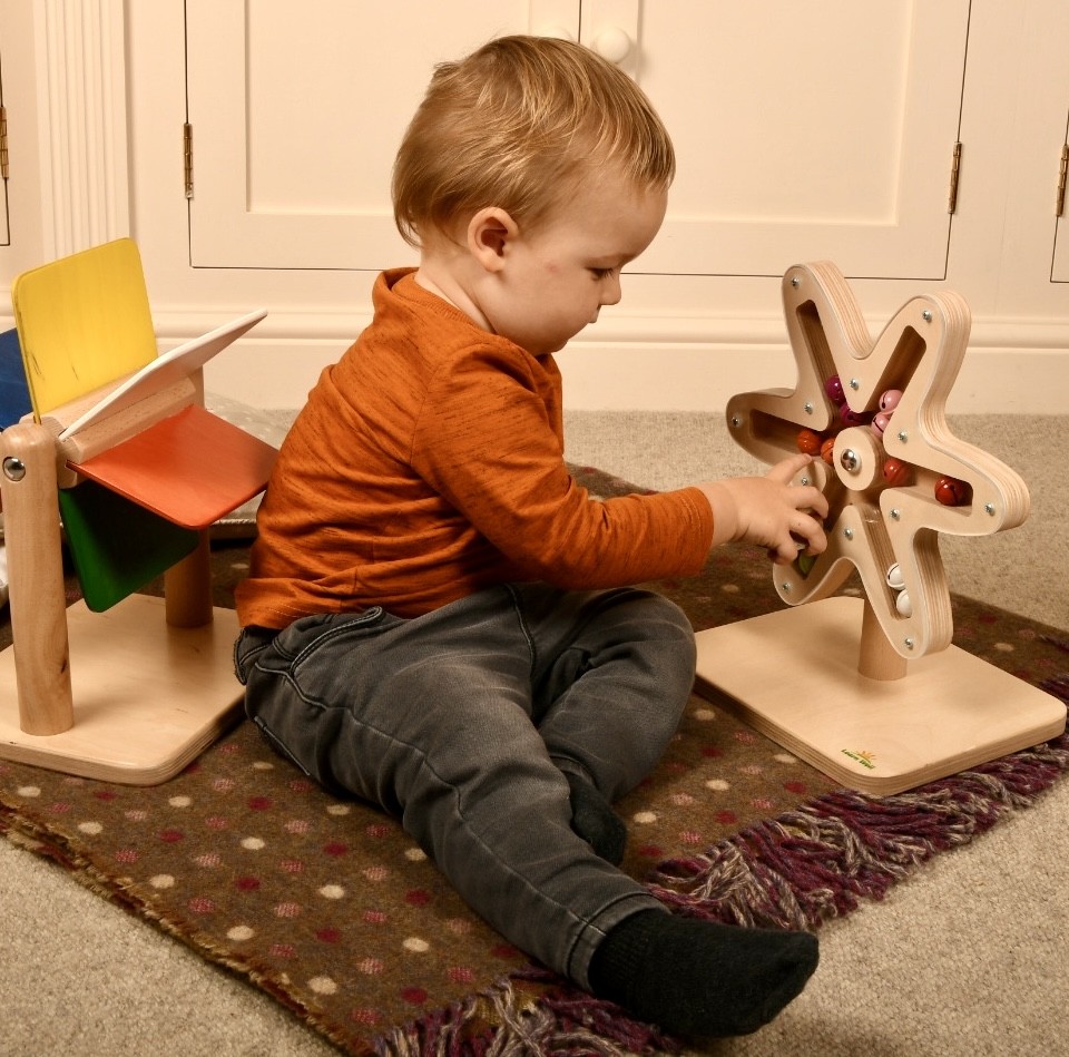 The rotating bell flower is ideal for exploring  sight and sound with young children and older ones with additional needs. The enclosed bells chime pleasantly as the flower is spun, making different sounds depending on the speed.