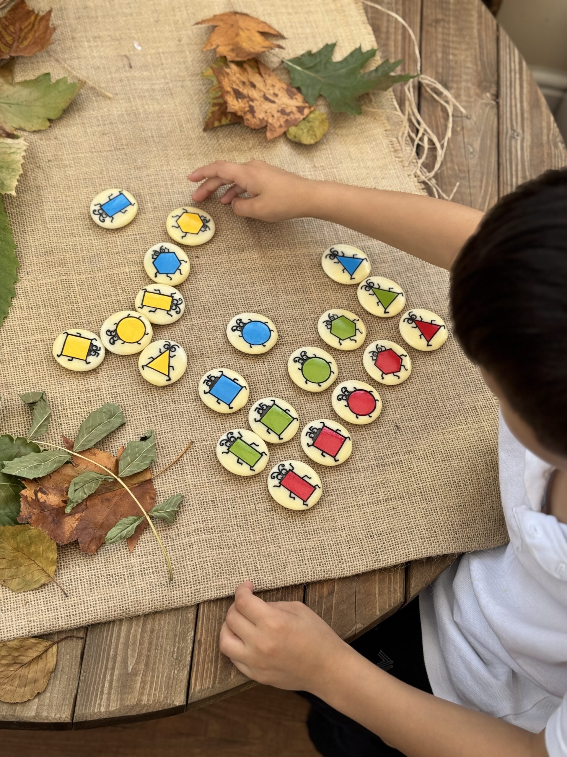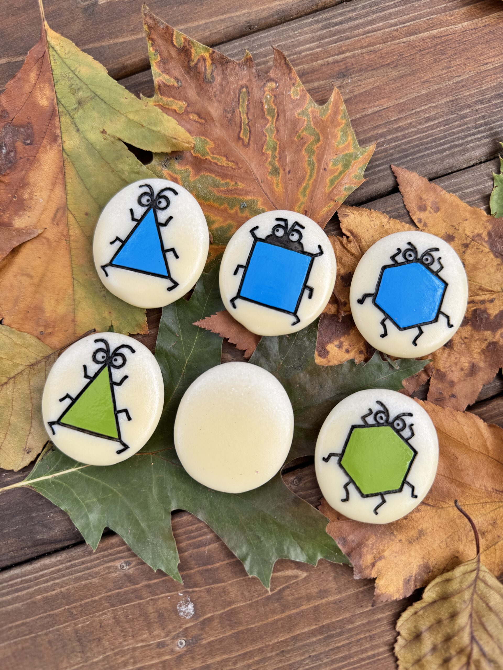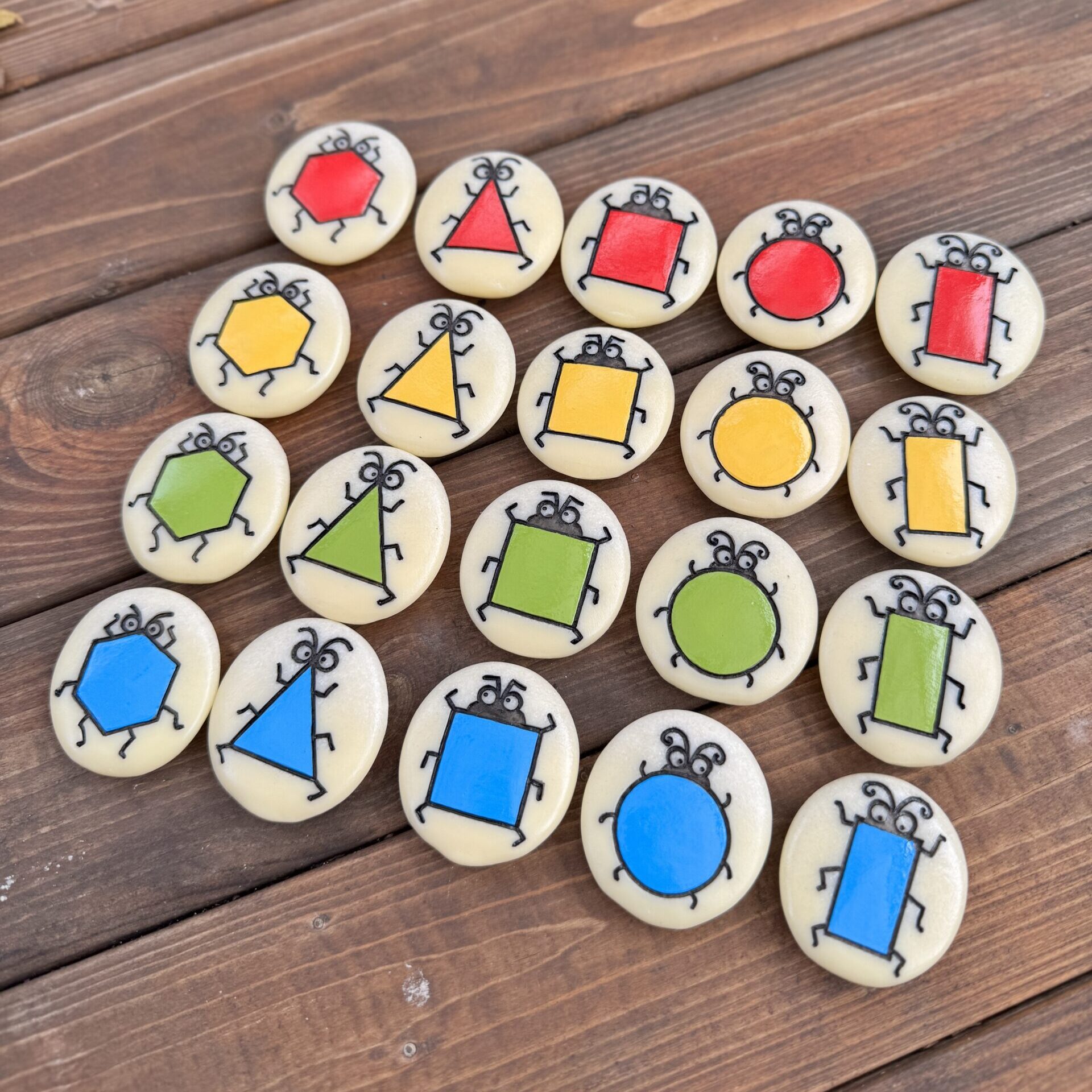 “Getting practice with sorting at an early age is important for numerical concepts and grouping numbers and sets when they’re older. This type of thinking starts them on the path of applying logical thinking to objects, mathematical concepts and every day life in general. This lovely tactile set of stones leaves the child to choose whether to sort the insects by shape or colour.”